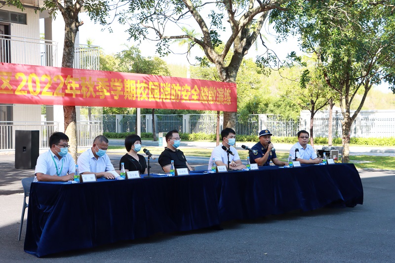 为进一步加强校区安全工作,提高师生消防安全意识和应对突发事故发生时的自救逃生能力,10月12日下午,校区在海智楼举行了2022年秋季学期校园消防安全疏散演练活动。校区党委委员、管委会副主任、演练活动总指挥陈永强出席活动并作总结讲话,阳江市消防救援支队防火科宣传培训负责人韦智锋现场作点评和培训。后勤保障部第一负责人袁仁广、第二负责人周斌,学生事务部第一负责人邓朝晖、第二负责人翁江峰,校区物业经理伏帅等领导出席。后勤保障部、学生事务部全体人员、各学院辅导员代表、2022级新生代表、消防志愿者协会等450余人参加了活动。演练活动由袁仁广主持。