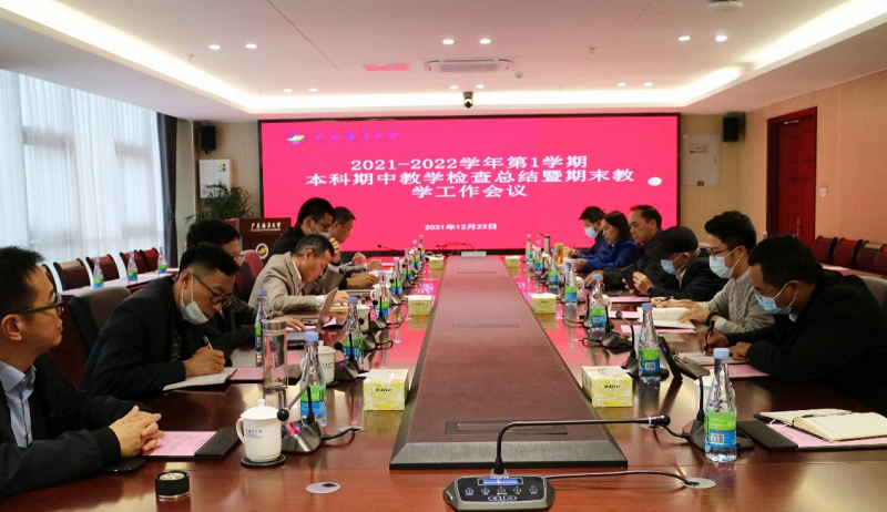 12月23日下午,阳江校区2021年秋季学期期中教学检查总结暨期末教学工作会议在海纳楼712会议室召开。校区管委会副主任张界新、委员毛琪、李鹏虹、各相关职能部门负责人、各教学单位负责人、教学督导吴卫祖、各教学单位教务员及教学科研部全体人员参加会议;受校区管委会周昌仕主任委托,教学科研部夏杏洲主持会议。