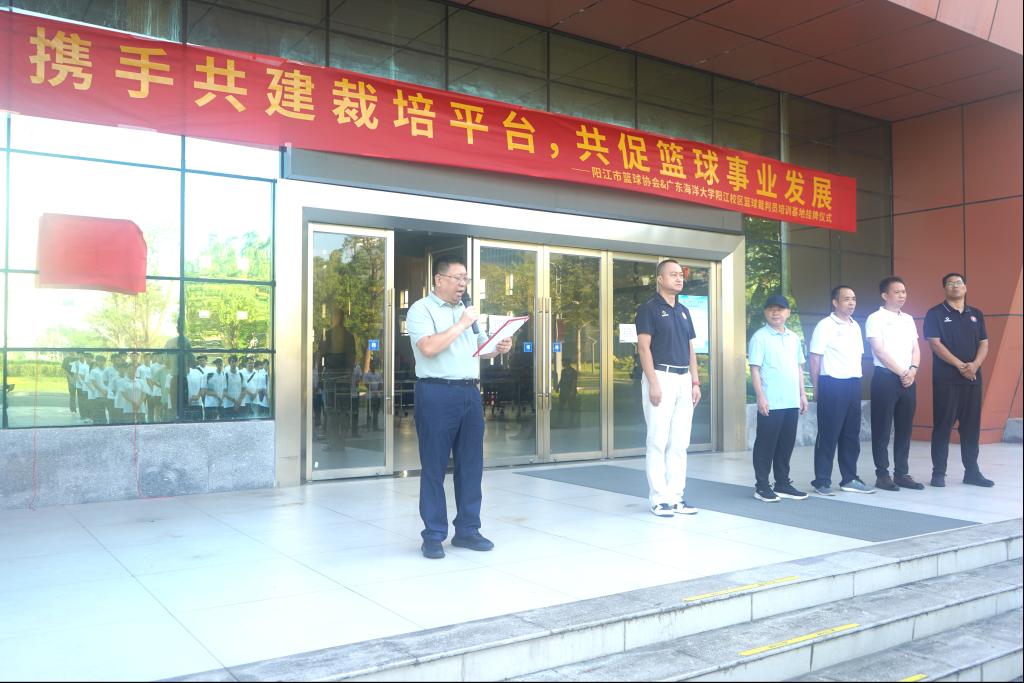 挂牌仪式后,与会嘉宾参观了校区体育馆的篮球场地、裁判教学设施等硬件资源等,并为首期培训班学员开班做动员讲话,张新美院长表示,校区将开放优质教学资源与场馆设施,配合市篮协设计科学培训体系,做好师资协调、学员管理等保障工作,携手将基地打造成阳江及周边地区篮球裁判人才的“成长摇篮”。
