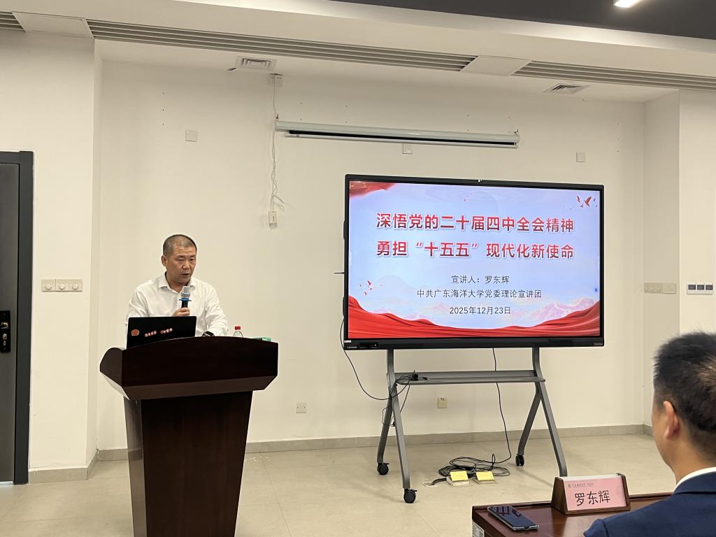 学校理论宣讲团成员罗东辉围绕五大核心主题展开解读,阐明党的二十届四中全会是在即将进入基本实现社会主义现代化夯实基础、全面发力的关键时期召开的一次十分重要的会议,强调其承前启后的历史意义。随后,他系统阐释了“十五五”时期的重要地位、经济社会发展的指导方针与主要目标,详细解读了现代化产业体系建设、科技自立自强等战略任务与重大举措。最后着重强调坚持党的全面领导是推进中国式现代化的根本保证,呼吁凝聚起共同奋斗的磅礴力量。