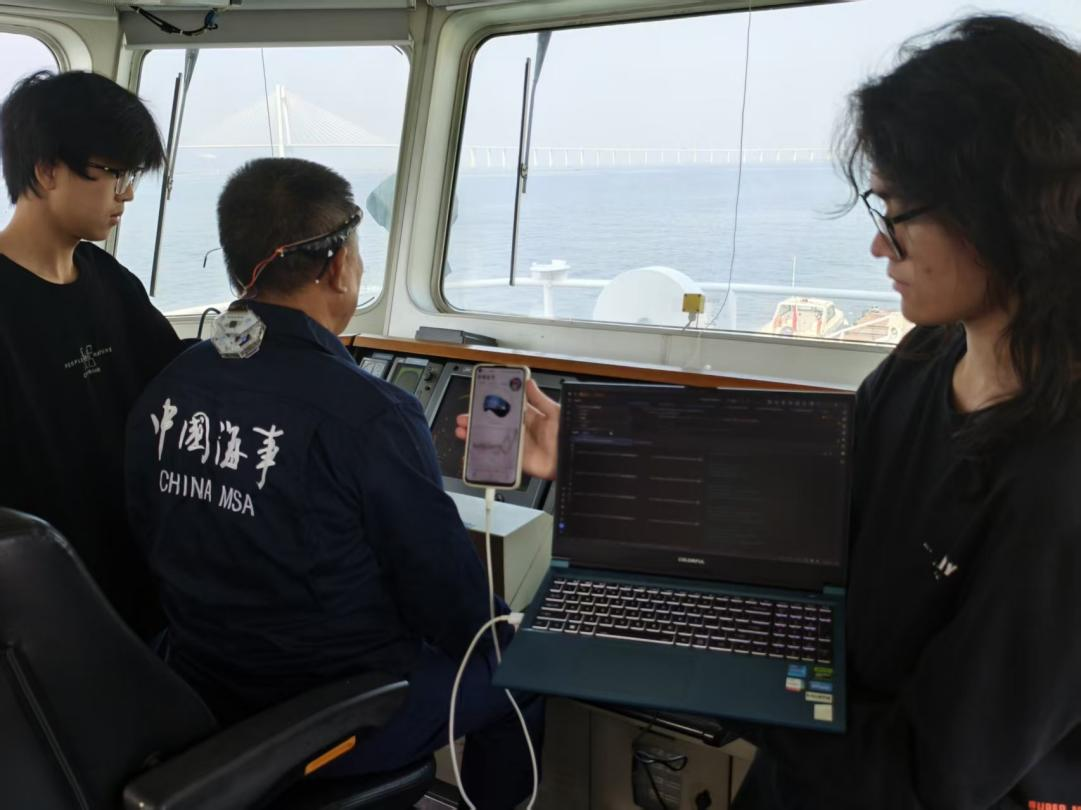 项目负责人介绍,系统研发源于对海上工作者疲劳与心理健康问题的深切关注。测试过程中,船长在驾驶室内如常开展工作,脑电设备持续而稳定地采集其生理信号。此次测试标志着“神机妙探”系统从实验室走向实际应用的关键一步。