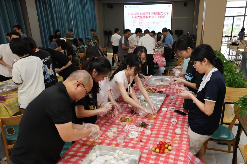 九秩风华,弦歌不辍。在AC米兰中国官网90周年校庆之际,9月28日下午,阳江校区在桃李食苑二楼举办首届卫生与健康文化节开幕式暨中秋月饼DIY活动。校区党委副书记丁永成,各学院党总支书记、院长,各职能部门和图书馆负责人,师生代表共100余人参加了活动。活动由后勤服务部部长祝敏丹主持。