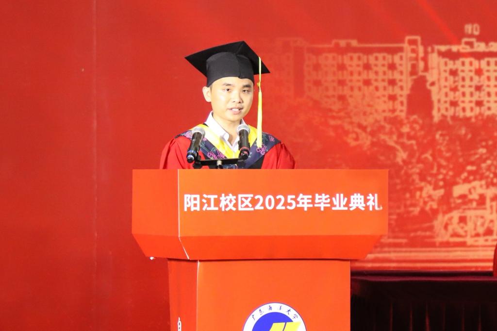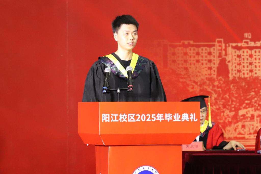 周昌仕在主持典礼时表示,毕业典礼不仅是大学时光的完美谢幕,更是开启人生新征程的激昂序曲。同学们即将带着阳江校区赋予的勇气与智慧,奔赴广阔天地。无论身在何方,愿同学们在各自的人生赛道上,以行动为笔,以汗水为墨,绘就绚丽多彩的人生画卷。