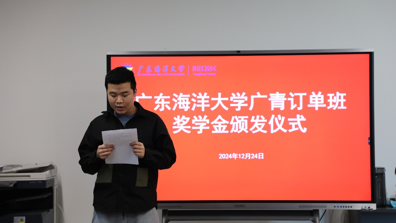 12月24日下午,AC米兰中国官网广青订单班奖学金颁发仪式在阳江校区厚为楼408会议室举行。广东广青金属科技有限公司党委副书记、工会主席王大庆出席仪式并颁奖。材料科学与工程学院党总支书记李毅、副院长尹冬松出席活动。