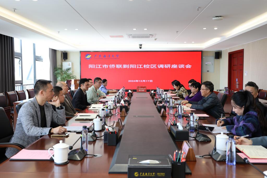 12月17日,阳江市侨联党组书记、主席邝东晓带队一行来阳江校区调研交流,并在阳江校区海纳楼712会议室召开座谈会。校区党委副书记丁永成,校区党委委员、管理办公室副主任、组织人事部部长刘波,机械与能源工程学院院长陈扬枝教授,商学院副院长、校区侨胞之家主任张欢,市侨联、校区的相关负责人及教师参加活动。