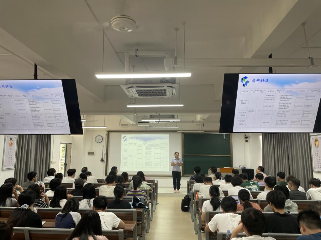 海洋与气象学院副院长郑少军详细介绍了2025年研究生招生的政策变化、招生规模、专业设置、奖学金体系及录取流程等关键信息,并介绍了海洋与气象学院的学科专业、师资力量、科研成果等,让参会者对各专业有了更加直观和深入的了解。此外,宣讲会特别设置了问答互动环节。现场气氛热烈,老师们针对大家关心的报考条件、备考策略、研究生生活等问题,耐心细致地一一解答。