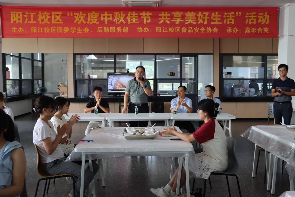 9月11日下午,一场别开生面的“欢度中秋佳节,共享美好生活”冰皮月饼DIY活动在校区嘉禾食苑二楼举行。校区党委副书记陈永强出席活动并致辞,后勤服务部、团委学生会及学生80余人参加活动,活动由后勤服务部副部长阮智晖主持。