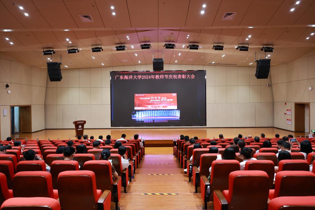 金秋九月,杏坛飘香。为大力弘扬教育家精神,营造尊师重教的浓厚氛围,激励全校教育工作者担负“为党育人、为国育才”使命,推动学校教育事业高质量发展,9月10日上午,学校召开2024年教师节庆祝表彰大会,共同庆祝第四十个教师节。会议以“大力弘扬教育家精神 加快建设教育强国”为主题,向辛勤耕耘在教育一线的教职工致以诚挚的节日问候。阳江校区在海纳楼113会议室设分会场,校区党委副书记丁永成、陈永强,全体教职工参加活动。