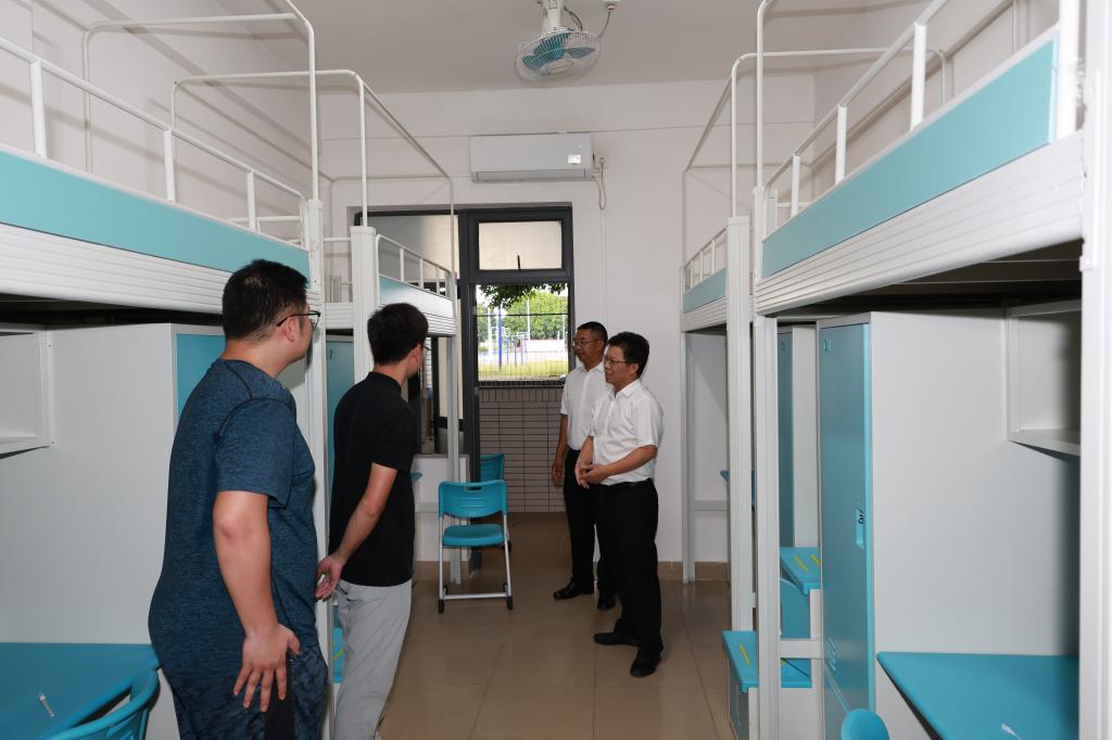 为确保2024年秋季学期各项工作平稳、有序、高效、安全开展,以有力举措护航开学季、迎新季,8月26日下午,校区党委副书记丁永成带领校区管理办公室副主任、综合事务部部长张家荣、后勤服务部副部长阮智晖及物业管理有关人员对阳江校区迎新准备和校园安全等工作进行了全面检查指导。