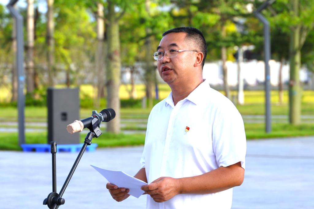 丁永成以“传承红色基因,弘扬伟大建党精神”为主题作讲话。他指出,举行升旗活动,不仅仅是为了庆祝党的生日,更是为了传承红色基因,弘扬伟大建党精神。当前我们国家正处于全面建设社会主义现代化国家新征程上,全党正在开展党纪学习教育,要以“七一”为契机,进一步激发基层党组织活力,增强广大党员的光荣感、使命感;紧紧围绕“高水平大学建设”目标,以高质量党建引领高质量发展。丁永成勉励全体师生,要凝心聚力、团结一致,以更加饱满的热情、更加昂扬的斗志、更加坚定的信念,笃行不怠、久久为功,传承弘扬好海大精神,全力推动校区党的建设迈上新台阶、引领校区高质量发展取得新成绩,努力在教育强国征程中展现“阳江校区”新作为、谱写“阳江校区”新华章。
