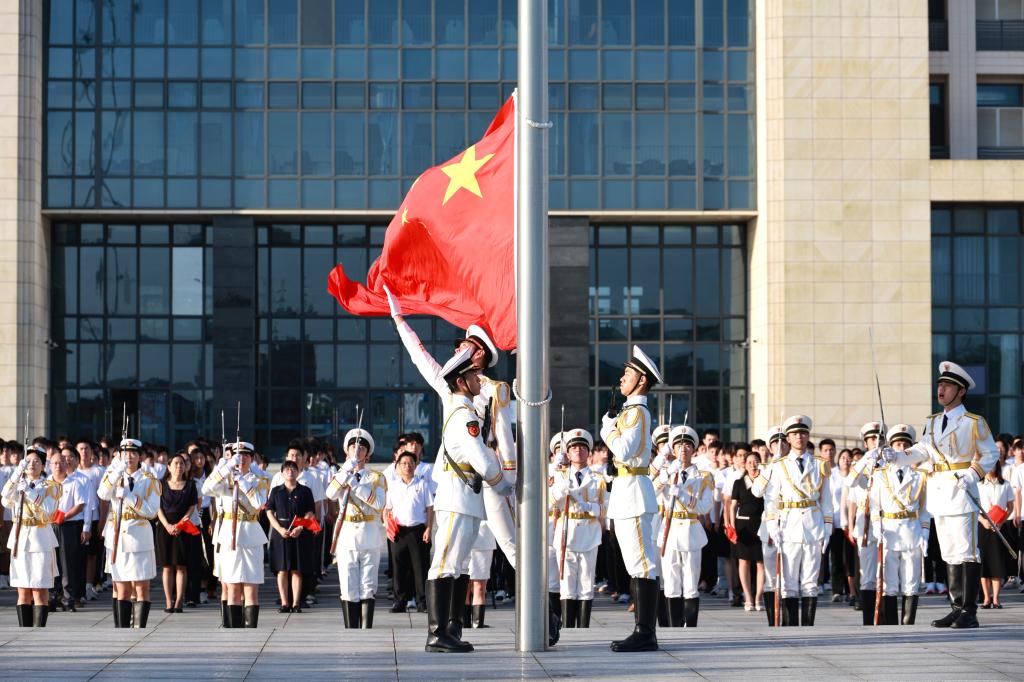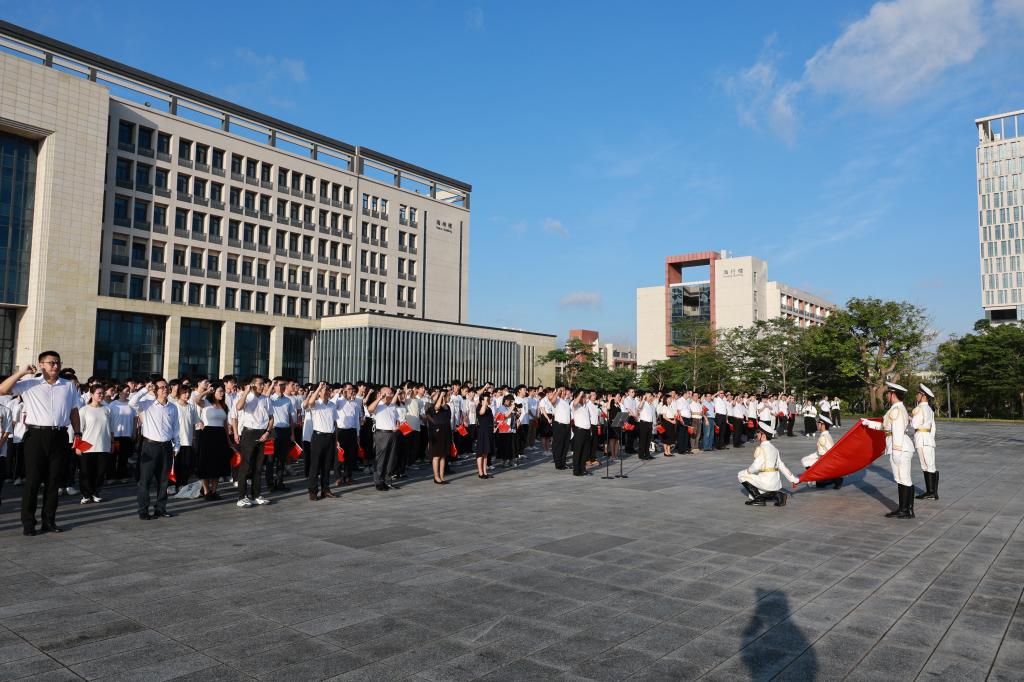 为庆祝中国共产党成立103周年,教育引导广大党员师生坚定理想信念,弘扬爱国主义精神,7月1日清晨,阳江校区在锦绣广场举行“七一”升旗活动。校区党委副书记丁永成出席活动并讲话。校区管理办公室副主任、综合事务部部长张家荣主持活动。校区领导、校区各单位党政负责人、教职工代表、校区学生代表共1100余人参加活动。