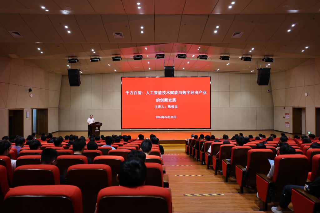 陈俊龙院士在113报告厅作题为《千方百智: 人工智能技术赋能与数字经济产业的创新发展》的学术讲座。讲座围绕人工智能科技发展前沿,结合生活中常见的人工智能应用场景,深入浅出地讲解了人工智能技术在现代化社会中的应用与发展,内容丰富、论述精辟、启迪思维。校区师生代表200多人参加讲座。