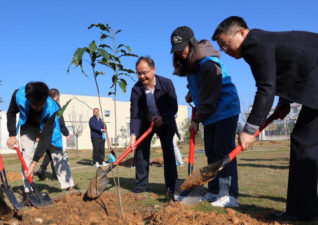 3月12日上午,阳江校区师生齐聚校区北门果树林,参加“弘扬生态文明,同建绿色校园”植树节活动。校党委常委、副校长,阳江校区管理办公室主任周昌仕出席活动并讲话。民盟阳江市委会副主委李迎、李小铁一行,校区各学院书记、部分职能部门临时负责人及学生志愿者们一同参加了植树活动。后勤保障部临时负责人周斌主持活动。