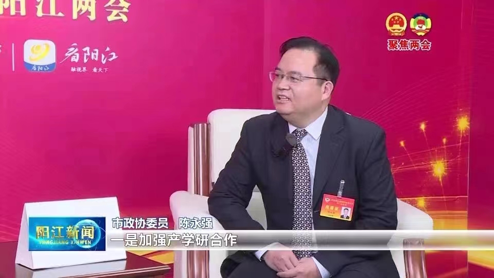 陈永强作为政协委员列席市八届人大五次会议,听取、讨论了政府工作报告,同时代表科教卫和环境界别参加了市政协座谈会。他非常赞同报告中科教兴市的相关内容,并对此提出了四点建议,一是加强产学研合作,推动科技创新和技术转移,为阳江市的产业升级、发展和转型提供支持;二是深化大学科技特派员团队服务县、乡镇的合作与交流,推动更多成果产出;三是开展科普宣传、技术培训和社区服务等活动,培养更多符合社会需求的应用型人才和创新创业人才出来;四是通过举办文化艺术展览、学术交流活动等形式,促进文化的交融和碰撞,提升阳江市的文化影响力。