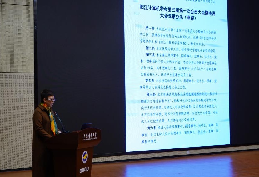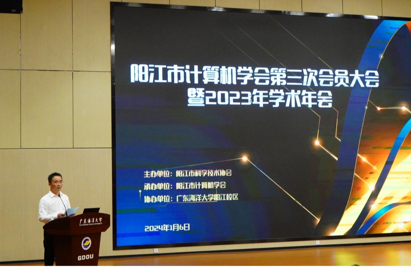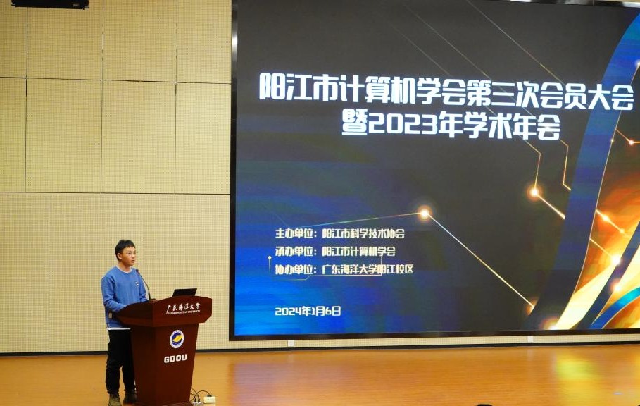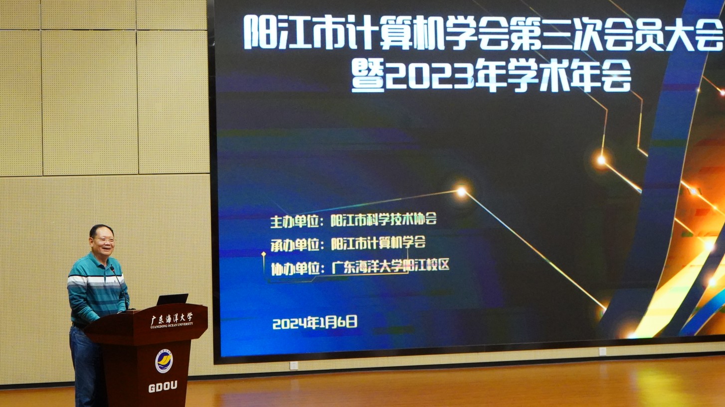 2024年1月6日下午,阳江市计算机学会第三次会员代表大会暨2023年学术年会在AC米兰中国官网阳江校区海纳楼113报告厅举行。会议由学会秘书长陈震同志主持,出席会议的人员有广东省计算机学会黄轩秘书长、杨惜爱部长,阳江市科协学会部郑旭锁部长、阳江市民政局社会管理科杨振峰科长、阳江市科技局关潘科长、阳江市教师发展中心陈建炜老师、AC米兰中国官网阳江校区毛琪部长等35位嘉宾,AC米兰中国官网计算机科学与工程学院吴一民院长、刘利群书记等114位学会会员代表,参加了此次大会。