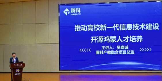 大会邀请广州腾科网络技术有限公司产教融合事业部总监吴嘉诚,作了《推动高校新一代信息技术建设-开源鸿蒙人才培养》专题报告。江苏润和软件股份有限公司开源大师兄生态运营负责人李伟,现场向阳江市计算机学会捐赠开源大师兄开发板20套,应用于教学实验。