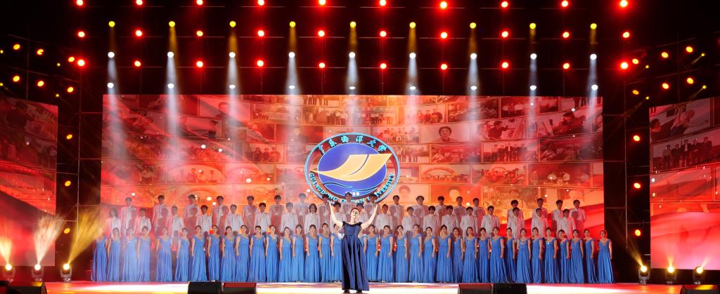 晚会在歌舞《追梦的光彩》的精彩演出中拉开序幕。本次晚会以"海洋的印记,追梦的光彩"为主题,分为“筑梦”“逐梦”和“追梦”三个篇章,通过深情款款的大合唱《祖国不会忘记》,青春活力的舞蹈《青春誓言》《青春脚步》《扬帆远航》,歌组合《青春之歌》,独唱《我们,你们》等节目唤起了观众对海大奋斗历程的记忆。晚会精彩的演绎体现了海大学子逐梦青春的矫健身姿和昂扬风貌,展现了中歌艺术学院初期的奋斗精神和学校的发展变迁,为观众带来了视觉与心灵的双重震撼。在这场视听盛宴中,学子们以动感十足的舞姿尽情释放青春激情,诠释了对生活的热爱和对梦想的追求,为现场观众呈现了一场精彩纷呈的歌舞表演。