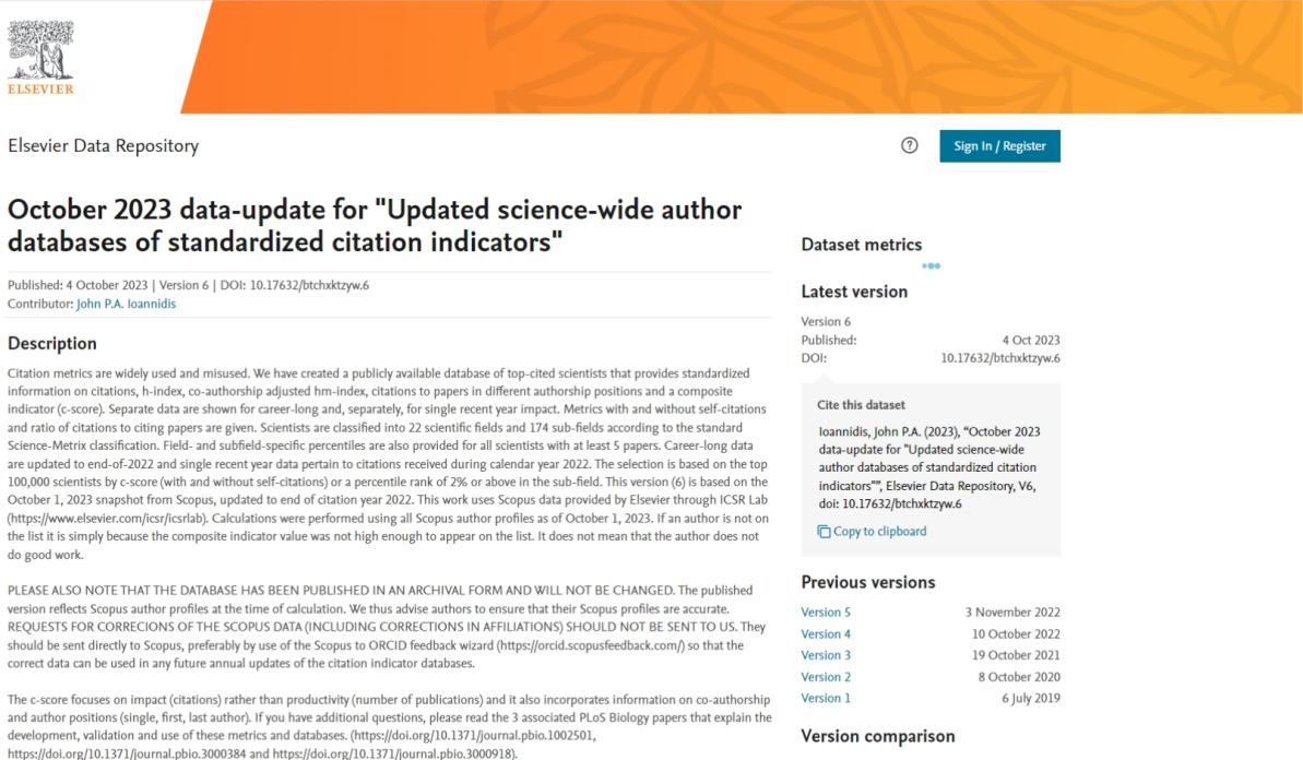 据悉,该榜单由斯坦福大学联合国际权威学术出版社Elsevier发布。2023年榜单的观测数据覆盖全球近1000万名科研学者,并从中遴选出世界排名前2%的顶尖科学家共约20万名,涵盖22个领域和174个细分子领域。该榜单基于Scopus数据库的引用数据系统分析,使用以下关键因素的指标来进行打分:1)总引用量,2)Hirsch H-index,3)共同作者修正的Schreiber Hm-index,4)单独作者,5)单独或者第一作者,6)单独、第一或者最后作者的文章引用量。该榜单着重于学者的引用影响力及作者贡献度,为科学家长期的科研表现提供了一个衡量指标,能够更客观、更真实地反映科学家的影响力。