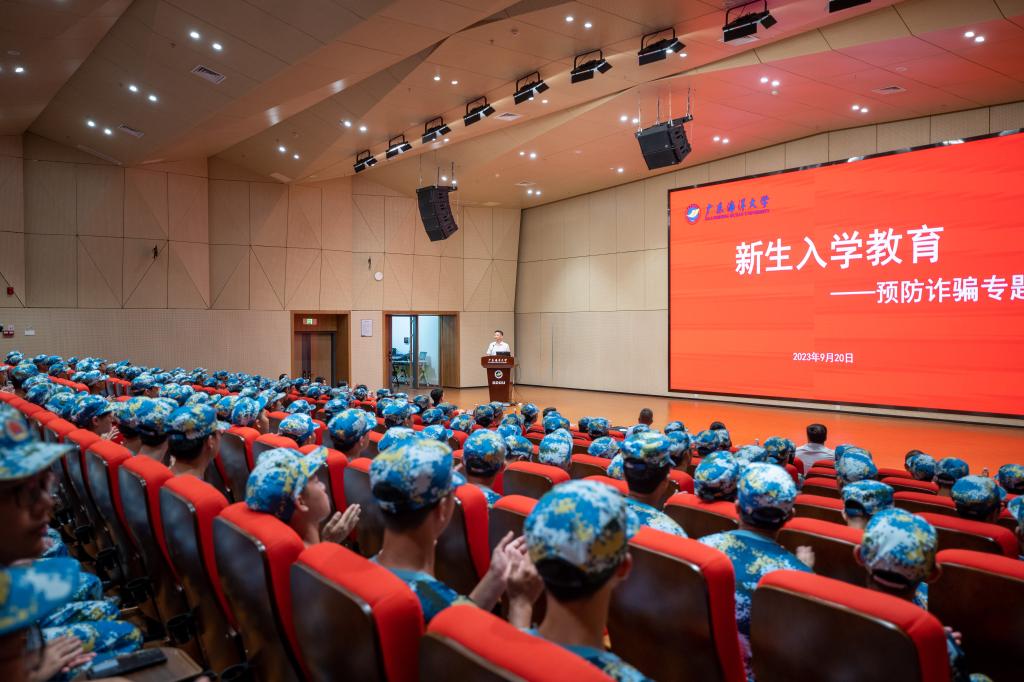 9月20日晚,阳江校区联合阳江市公安局等部门在海纳楼113多功能厅组织开展2023级新生入学教育反诈骗知识讲座,讲座同步在慎思楼18间教室进行直播,1500余名新生参加。机械与能源工程学院第一负责人、书记陈杨枝主持讲座。