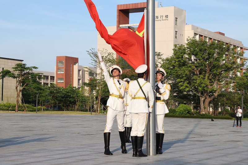 7时整,升旗仪式正式开始。国旗护卫队员迈着整齐的步伐,护送五星红旗入场。五星红旗冉冉升起,师生齐唱中华人民共和国国歌,向五星红旗行注目礼。随后,在周昌仕的带领下,全体党员面向党旗,重温入党誓词,表达对党的崇高信仰以及为党的事业奋斗终生的坚定决心。