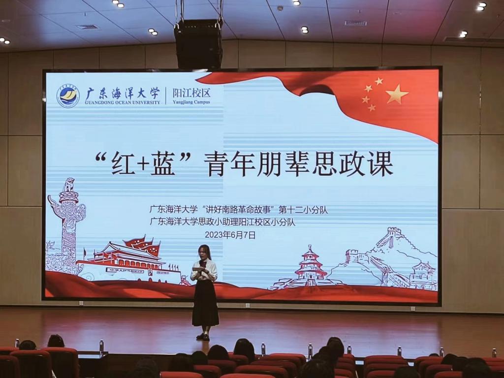 为深入开展学习贯彻习近平新时代中国特色社会主义思想主题教育,6月7日下午,校区“讲好南路革命故事”第十二小分队宣讲员和“思政小助理”阳江校区小分队宣讲员开讲了“红+蓝”青年朋辈思政课。校区180余名学生代表参与了学习。