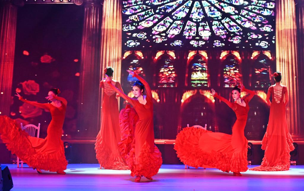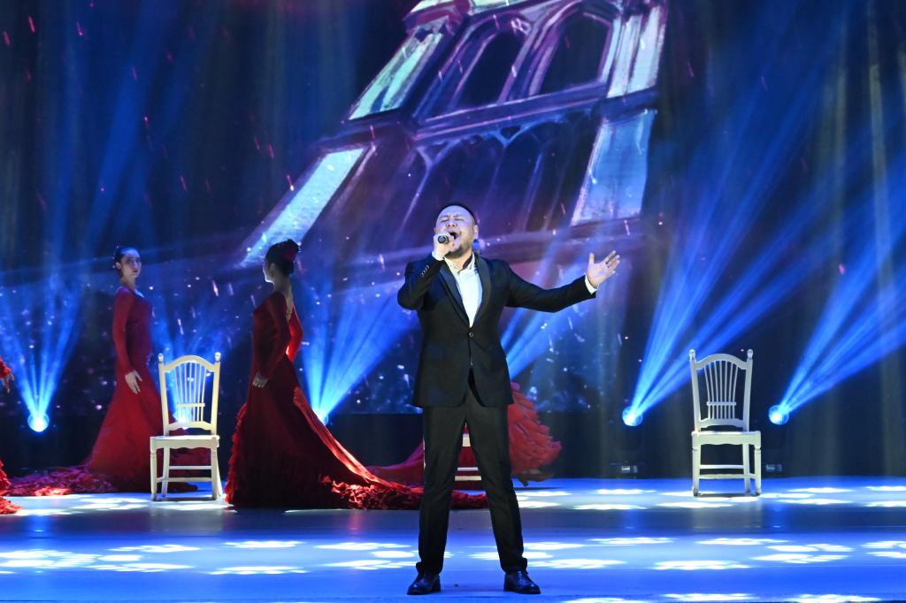 19时30分,节奏明快、浓厚异域风情的印度舞《欢快的黛娃达茜》拉开了专场演出的帷幕,演员们在欢快富有节奏感的音乐中再现了印度古代神庙舞女的婀娜舞姿。随后,排箫、口笛演奏曲子《山鹰》《云雀》,犹如天籁之声。缅甸舞蹈《敏阿拉巴》、奥地利《小夜曲》、法语音乐剧《大教堂时代》、西班牙舞蹈《火热的飞裙》、意大利歌曲《哦 我亲爱的爸爸》、俄罗斯歌曲与舞蹈《夜莺》、斯里兰卡舞蹈《罐舞》、西班牙歌曲《MAY WAY》《花儿为什么这样红》、埃及舞蹈《幻沙魅惑》、钢琴与歌曲《夜蓝色的浪漫》等精彩节目轮番上阵,赢得台下师生阵阵掌声。最后,晚会在全体演员表演的《丝路霓裳》中落下帷幕。
