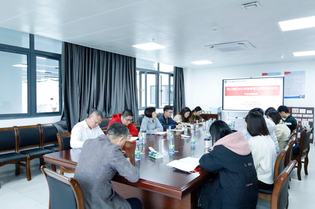 12月1日下午,由学生事务部主办,机械与能源工程学院承办的主题为“平安校园建设学工谈”第3期辅导员沙龙在海纳楼745举办。校区全体辅导员及学生事务部老师约20人参加了活动。活动由机械与能源工程学院党组织负责人陈扬枝主持。