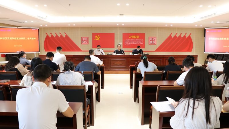 11月17日下午,阳江校区在海纳楼5楼党建活动室面向校区党建队伍宣传党的二十大精神。校区党委委员、管委会副主任陈永强主持会议。校区党委委员、纪委书记、管委会委员、综合事务部第一负责人毛琪,校区管委会委员、组织人事部第一负责人李鹏虹,以及校区机关联合党支部全体党员,各单位各部门办公室临时负责人、宣传员,各支部组织员,共40多人参会。