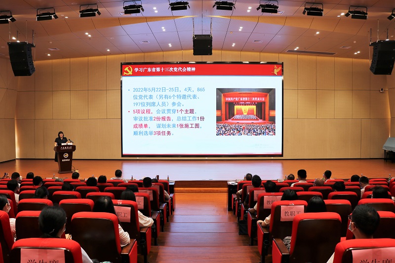 王爱云以“蓝图已绘就,奋斗正当时”为主题,详细讲解了广东省第十三次党代会的主要事项、重要意义、主要内容。她强调,校区师生要认真学习贯彻省第十三次党代会精神,要扛起历史责任,始终保持干劲、革命热情、拼命精神,掌握“致广大而尽精微”的成事之道,保持“苦干实干,能干善干”的实践品格,奋力推进校区高质量发展。