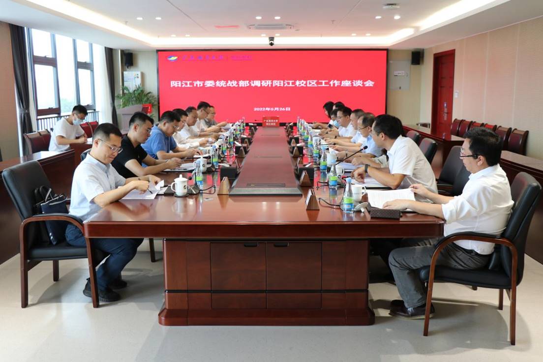 王兵一行先后来到阳江校区厚为楼、商学院、图书馆,实地考察校区二期规划建设和学院学科建设、图书馆建设等情况,随后召开座谈会。校区党委副书记、管委会常务副主任周昌仕主持会议,阳江校区党委委员、纪委书记、管委会委员、综合事务部部长毛琪汇报了阳江校区建设及统战工作情况。