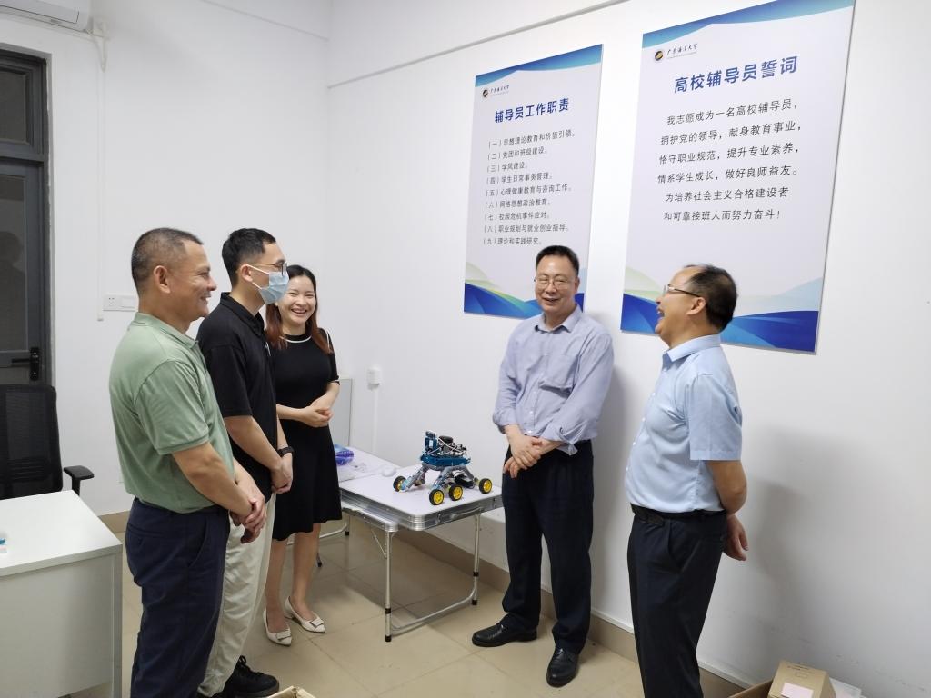 彭权群率队先后实地走访了阳江校区的饭堂、学生宿舍及辅导员办公室,和师生亲切交谈,送上学校的关心和问候。听到很多学生有考研意向,有的已经参军入伍,彭权群非常高兴,对同学们潜心读书、心怀远方的精神面貌给予充分肯定,他勉励同学们要积极响应学校防疫规定和日常管理,珍惜大学时光,认真学习,为未来发展做好人生规划。同学们对学校领导的暖心关怀表示感谢,纷纷表示将以高昂的状态投入到学习生活中,奋发有为、不负韶华。