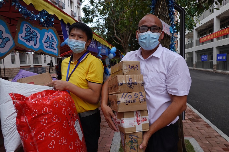为方便新生,校方协调安排了两辆大巴车到阳江高铁站出口接送学生。校内也安排了四辆公车,新生一进校门口就将其送至学生公寓楼下的各学院报到登记点。