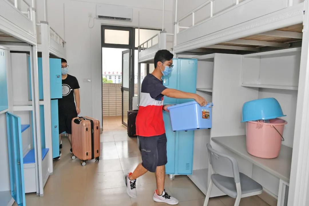 15日,两人早上6点半就开始了一天的迎新工作。经过提前培训、核酸检测、初次团建后,他们一群“小伙伴”被分成A、B、C三组志愿者,在校里校外帮助新同学搬行李、找宿舍,引导家长到校门口休息区。