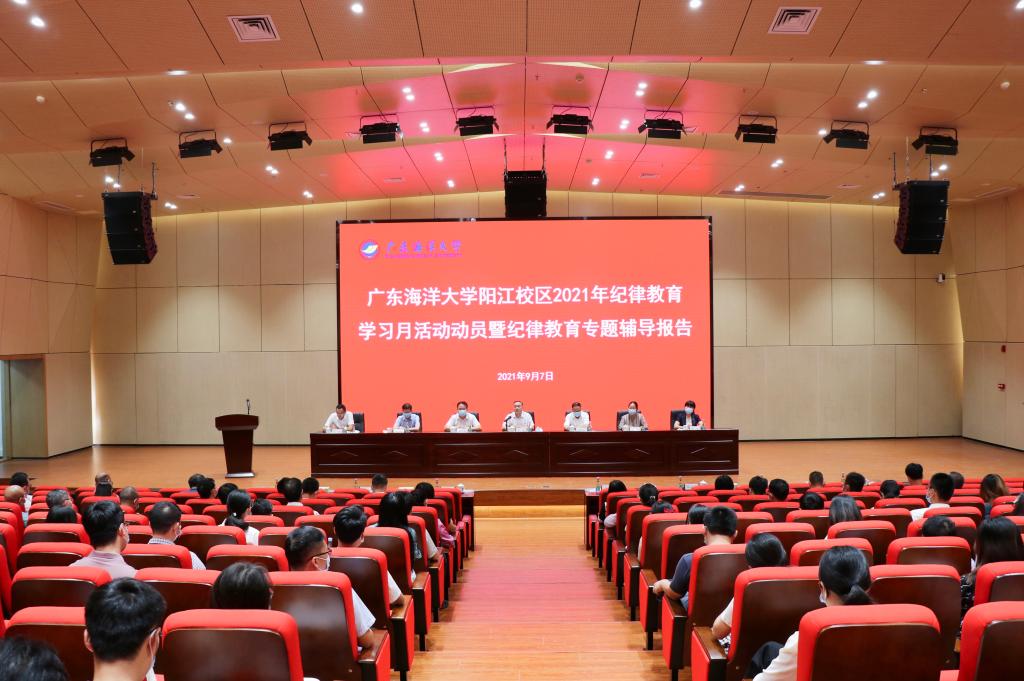 9月7日上午,按照学校党委统一部署,阳江校区党委在阳江校区海纳楼一楼报告厅组织召开阳江校区2021年纪律教育学习月活动动员暨纪律教育专题辅导报告会,校区全体干部教师参加。学校党委常委、副校长、校区党委书记、管委会主任宁凌出席并作动员讲话暨专题辅导报告。校区党委副书记、管委会常务副主任洪鹏志主持会议并讲话。校区党委委员、纪委书记毛琪对阳江校区2021年纪律教育学习月活动作了具体安排。