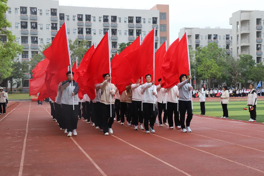 伴随着激昂的旋律,国旗队、校旗队、红旗队、裁判员方队以及机关联合工会方队、各学院方队依次入场。本届运动会共设20个学生组项目、11个教工组项目,5支学生代表队和7支教工代表队近400名运动员参赛。