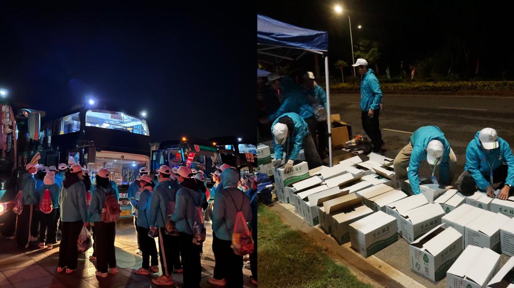 凌晨4时的校园内,身着统一志愿服装的学子们已整齐集结。在带队老师的统筹下,志愿者们有序登车、清点物资,带着饱满的热情奔赴服务点位。清晨5时30分,所有志愿者全部到岗就绪,迅速投入赛前准备:补给组细心摆放饮用水、能量食品与降温用品,医疗组调试急救设备并熟悉应急处置流程,指引组反复确认赛道标识与分流节点,用严谨态度筑牢赛事保障第一道防线。7时30分,随着发令枪响,志愿者们立即进入战斗状态,各司其职守护赛事顺利推进。