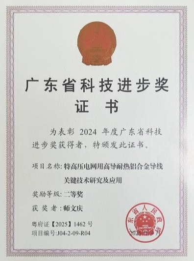 日前,广东省人民政府公布了2024年度广东省科学技术奖获奖名单。阳江校区材料科学与工程学院铁镝教授主持的《特高压电网用高导耐热铝合金导线关键技术研究及应用》项目荣获广东省科技进步奖二等奖。