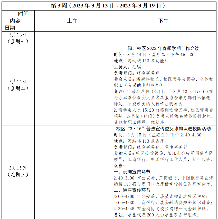 2022~2023学年第二学期第03周会议活动安排表