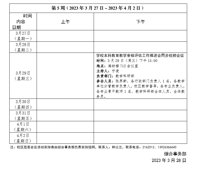 2022~2023学年第二学期第05周会议活动安排表