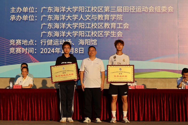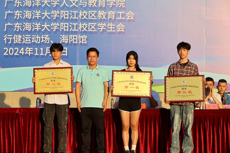 人文与教育学院、机械与能源工程学院、计算机科学与工程学院、材料科学与工程学院分别获得教工组团体总分第一、二、三、四名。商学院、食品科学与工程学院、计算机科学与工程学院分别获得学生组团体总分第一、二、三名。机械与能源工程学院学生组团体获得“体育道德风尚奖”,材料科学与工程学院学生组团体获得“优秀组织奖”。丁永成、人文与教育学院院长张新美为获奖代表队颁奖。