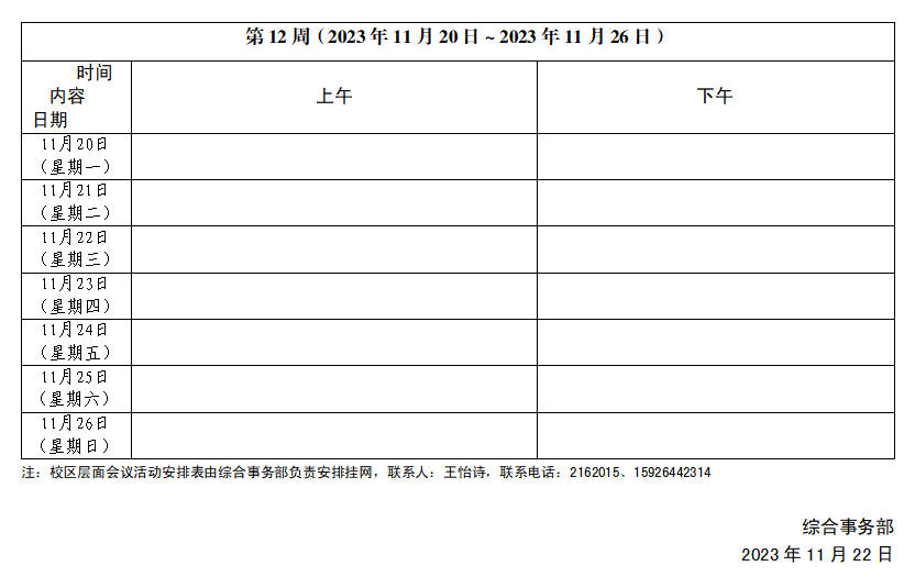 2023~2024学年第一学期第12周会议活动安排表