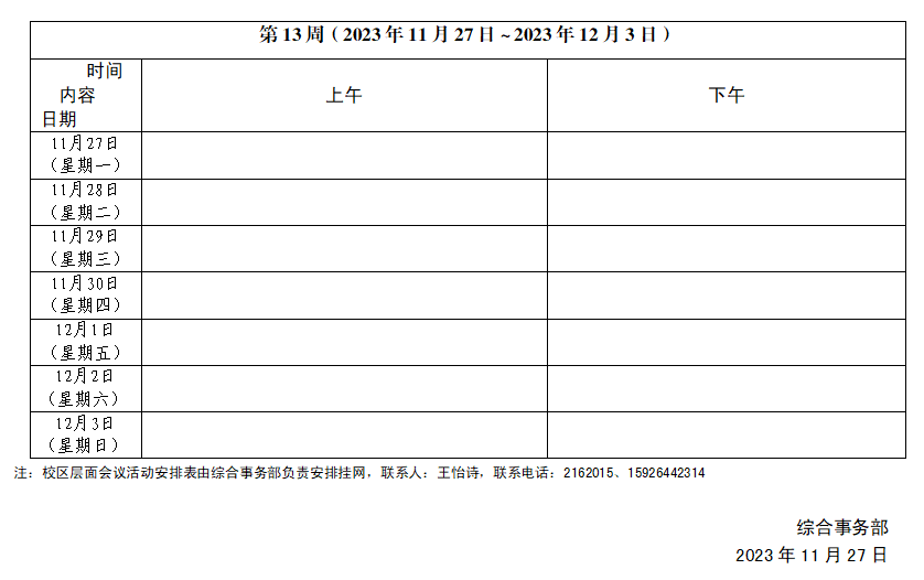2023~2024学年第一学期第13周会议活动安排表