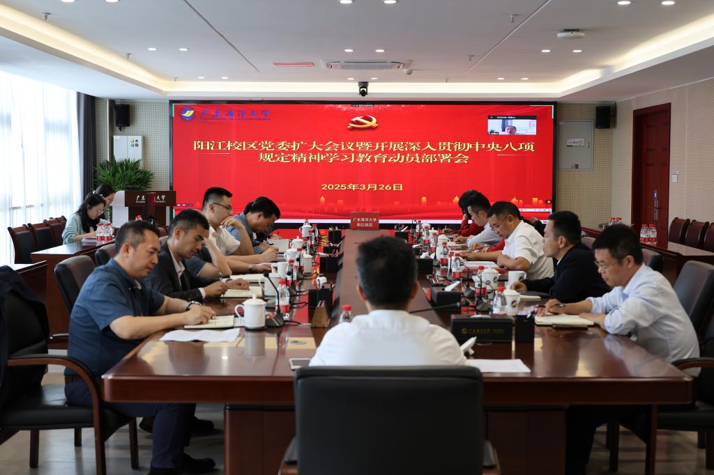 3月26日下午,阳江校区在海纳楼712会议室召开党委(扩大)会议暨开展深入贯彻中央八项规定精神学习教育动员部署会议。学校党委常委、副校长周昌仕主持会议并作动员讲话。校区领导、各职能部门主要负责人、各学院党总支书记以及校区图书馆负责人参加会议。