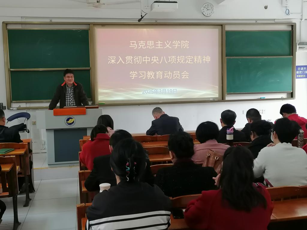 3月19日下午,马克思主义学院全体党员教师在湖光校区第二教学楼B3103教室召开全院教职工会议,部署开展深入贯彻中央八项规定精神学习教育。学院党委书记陈青松主持会议。